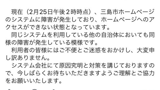 サイバー攻撃? 静岡・三島市のホームページのシステムに障害が発生、アクセスできな...