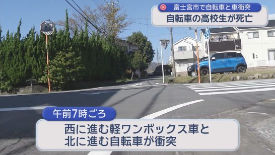 静岡・富士宮市で軽ワンボックス車と自転車が出合い頭に衝突 自転車に乗っていた高校...