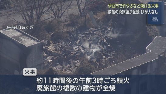 山林火災で廃業した旅館が全焼 一時50人ほどが小学校などに避難 静岡・伊豆市
