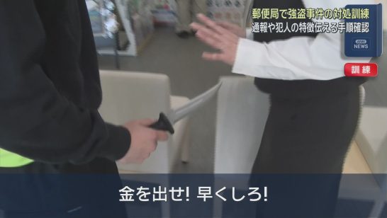郵便局で強盗に備える訓練 犯人が突然ナイフを取り出して現金を要求する想定 静岡・...