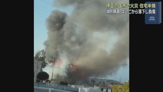 消火活動中の消防隊員の男性がはしごから落ちてけが 静岡・伊豆の国市で住宅が半焼す...