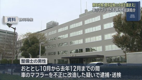 車のマフラーを不正に改造したとして逮捕された20代の整備士の男性を不起訴処分に