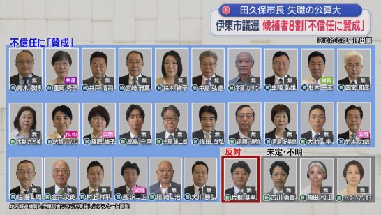 田久保市長の議会解散による市議選…候補者30人中26人が「市長不信任」賛成 各候...