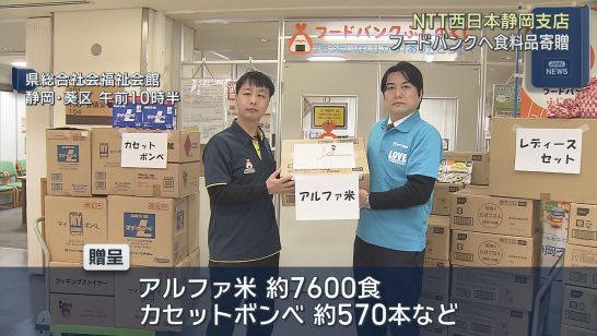 NTT西日本静岡支店がフードバンクふじのくにに災害用備蓄食料品を寄贈 静岡市葵区
