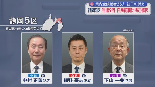 衆議院選挙公示 静岡県内8選挙区に26人が立候補12日間の選挙戦スタート