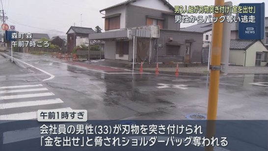 男性が3人組の男に刃物のようなもので脅され、財布の入ったバッグを奪われる 犯人は...