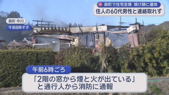 静岡・森町で住宅が全焼し焼け跡から遺体を発見 遺体はこの家に住む60代男性か