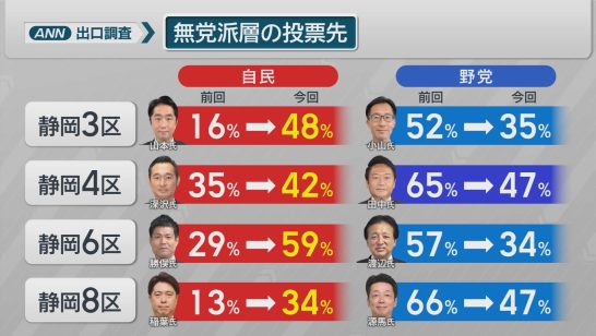 【衆院選】無党派の票の流れが前回から大きく変わる…自民+32ポイントの候補も 野...