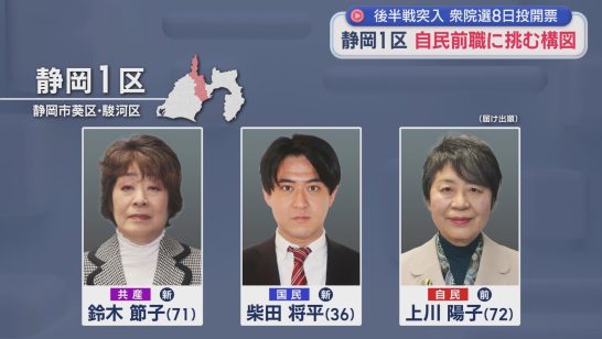 【静岡8区】県内で最も都市型の選挙区 中道・前職に自民・共産・参政の新人3人が挑...