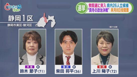 【静岡1区】大臣経験者の自民党前職に国民民主と共産の新人が挑む