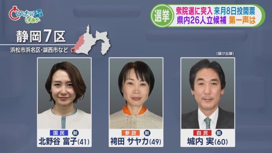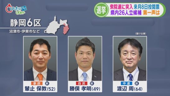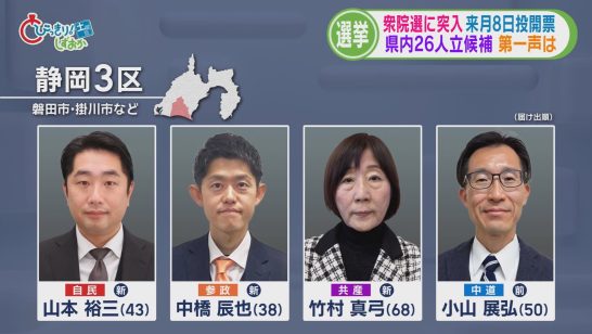 【静岡3区】中道の前職に自民・参政・共産の新人3人が挑む