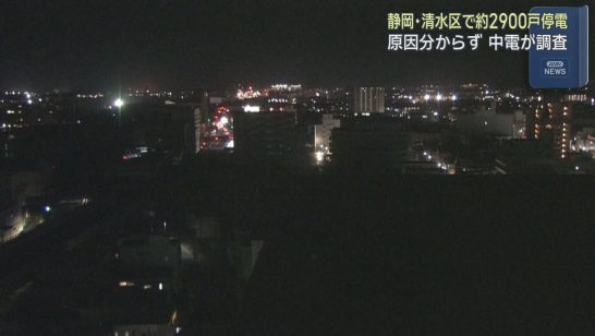原因は特定できず 15日夕方、静岡市清水区の中心部で最大およそ2900戸が停電