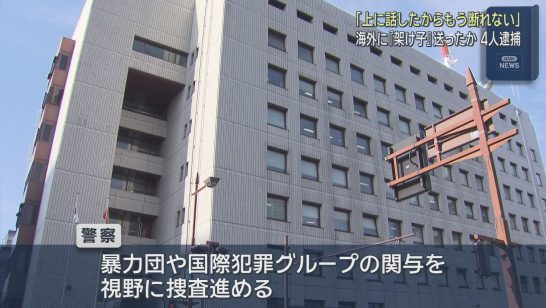 詐欺電話の架け子をさせる目的で男性を脅し東南アジアに移送 男4人を逮捕