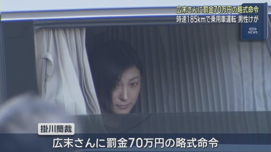 広末涼子さんに罰金70万円の略式命令 掛川簡易裁判所 新東名高速で追突事故を起こ...