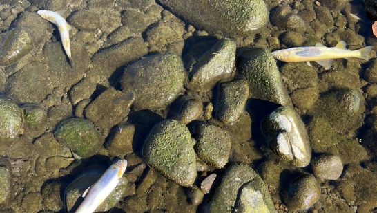 アユなどおよそ500匹の魚が死んでいるのが見つかった庵原川 水質調査を行ったもの...