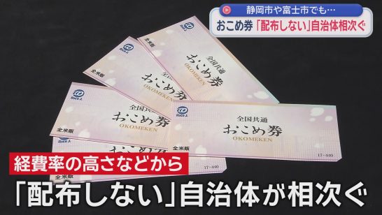 政府推奨の「おこめ券」静岡県内では10市町が「配布しない」方針を表明