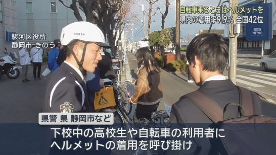 静岡県内の着用率は全国42位 県警や県などが自転車用ヘルメットの着用を呼び掛ける