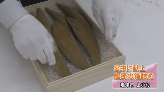 宮中に献上するカツオ節の箱詰め作業 和紙に包み桐箱に納め 静岡・焼津市