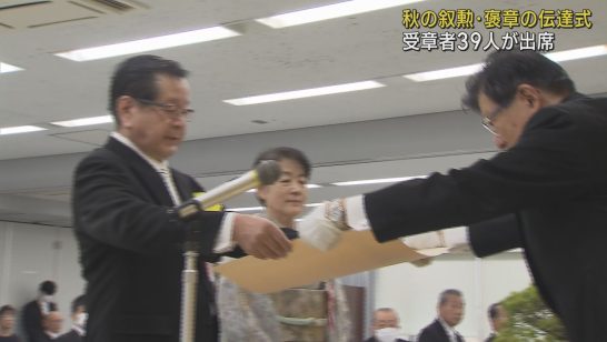 秋の勲章褒章伝達式 静岡県庁の式典には39人が出席 川勝平太知事が功績称える