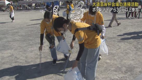 大道芸ワールドカップのメイン会場でキリングループの社員やボランティアらが清掃活動...